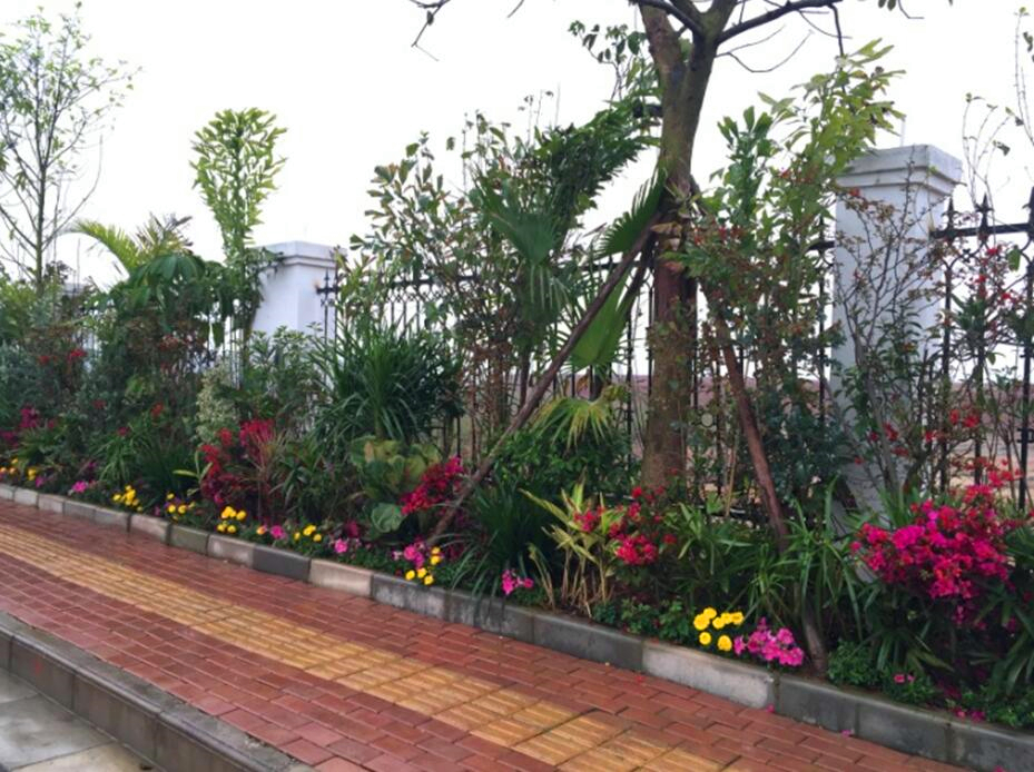 該項(xiàng)目位于高嶺路,于2014年12月開工,2015年2月完工,綠化面積約1000㎡,種植主要品種有:香樟、白蘭、懸鈴花、大葉傘、多花紅千層、山茶花、雙莢槐、冬紅、夾竹桃、三角梅、月季、矮牽牛等