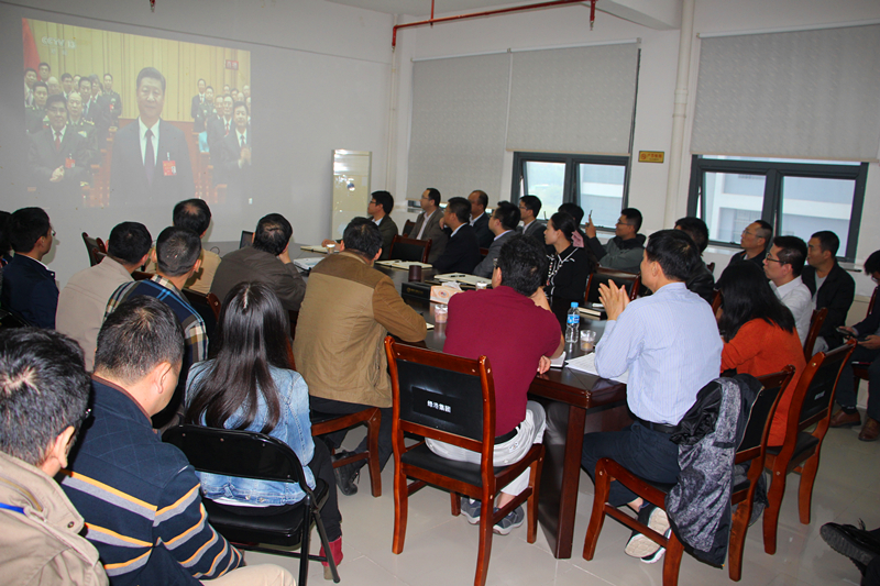 金秋十月,南國綠城花正艷。10月18日,黨的十九大在北京勝利開幕。當(dāng)日上午9時(shí),綠港集團(tuán)黨委組織集團(tuán)公司領(lǐng)導(dǎo)班子全體成員、董事長助理、總經(jīng)理助理,各部門、各子公司負(fù)責(zé)人及公司全體黨員,在麗匯大廈415會(huì)議室集中收看中國共產(chǎn)黨第十九次全國代表大會(huì)開幕會(huì)直播盛況。全體與會(huì)人員懷著無比激動(dòng)的心情,聚精會(huì)神,靜靜聆聽,認(rèn)真記錄,不時(shí)爆發(fā)出熱烈的掌聲!在長達(dá)三個(gè)半小時(shí)的收看過程中,整個(gè)會(huì)場始終保持莊嚴(yán)、肅穆、緊張、熱烈的良好氛圍。