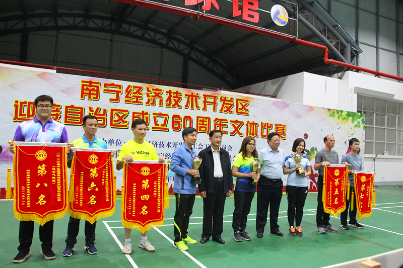 11月9日,南寧經(jīng)濟(jì)技術(shù)開發(fā)區(qū)管理委員會迎接自治區(qū)成立60周年文體活動圓滿落下帷幕,經(jīng)過七天的激烈角逐,綠港集團(tuán)乒乓球代表隊獲得冠軍、氣排球代表隊獲得第四名的好成績。