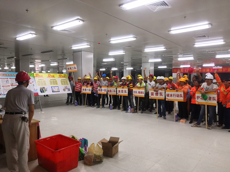 影片播放結束后,緊接著開展的是安全生產知識競賽活動。參與競賽的人員根據(jù)不同工種、不同部門分成9支隊伍。競賽內容包括安全生產法律法規(guī)、應急救援、消防、減災防災、勞動保護等多方面知識,競賽形式為舉手搶答。競賽過程中,9支代表隊你追我趕,毫不示弱,戰(zhàn)況十分激烈。選手們的活躍表現(xiàn)不時引來陣陣掌聲和歡笑聲,即使中途突發(fā)工地停電狀況,也未能澆滅大家的熱情,比賽在高漲的氣氛中繼續(xù)進行。此次競賽以寓教于樂的形式對管理人員和一線施工人員進行安全知識普及,除進一步提高其安全防范意識和應對事故的處理能力,還豐富了大家的業(yè)余文化生活,為有效防止安全事故的發(fā)生提供了有利保障。