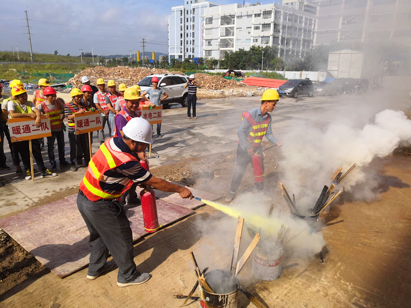 激烈的比賽結束后,消防應急演練活動開始了。當聽到“起火啦”的大喊聲,全體人員井然有序的進行了逃生演習。伴隨著濃濃的煙霧,每個人捂著“濕毛巾”,沿著樓梯靠右一個接一個的快速撤離。當全體人員走出廠房大門時,工作人員在空地上點燃了幾盆火焰。公司質安部負責人講解了干粉滅火器的使用方法后,大家進行了踴躍的嘗試。在此次消防演習中,本著防患于未然的心態(tài),所有人員積極參與,專心聽講,既鞏固了消防安全知識,也提高了項目安全生產工作水平。