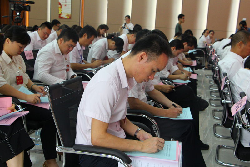 與會黨員認(rèn)真填寫選票