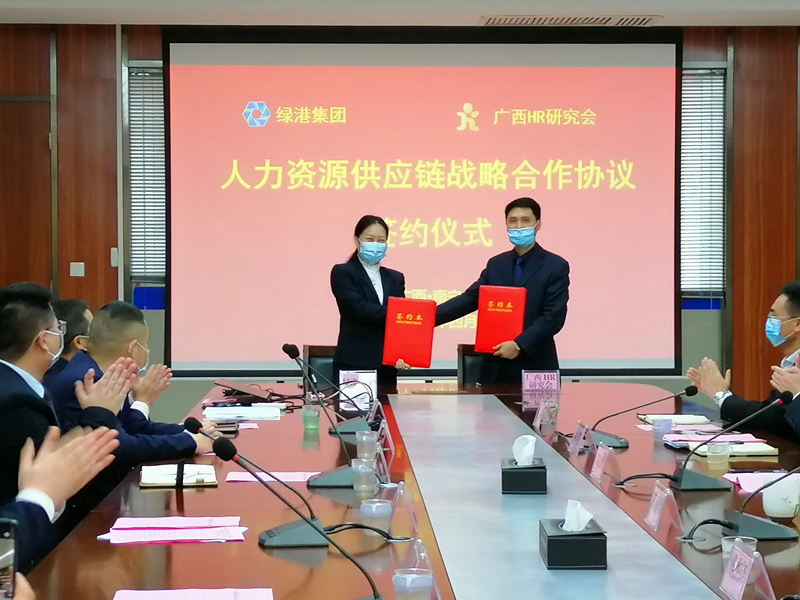 廣西人力資源研究會和綠港集團(tuán)簽訂人力資源供應(yīng)鏈戰(zhàn)略合作協(xié)議現(xiàn)場